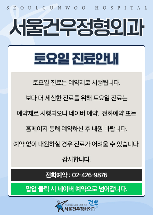 안녕하세요, 환자 여러분! 토요일에도 진료를 실시하오니 참고해 주시기 바랍니다.