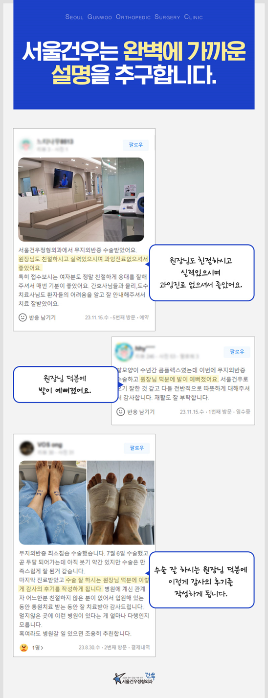 무지외반증을 해결하기 위해 MICA 수술을 고려하고 있다면, 잘하는 병원을 찾아내어 전문적인 치료를 받아보세요. 잘못된 치료로 인해 후유증이 남지 않도록 함께 고민하고 신중하게 선택하는 것이 중요합니다.