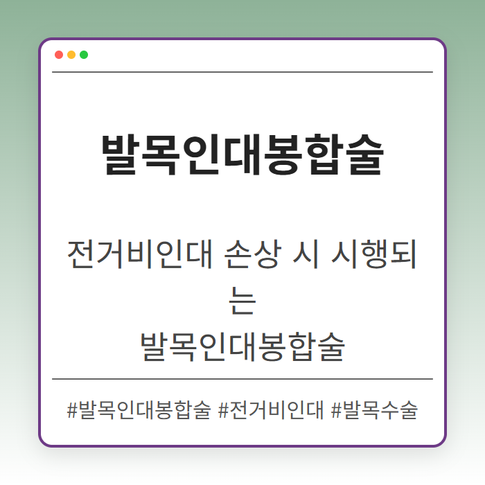 발목 인대 봉합술은 발목의 안정성을 복원하며, 장기적인 합병증을 예방할 수 있습니다.