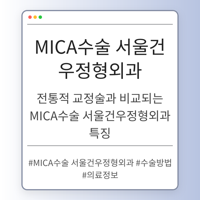 MICA수술 서울건우정형외과은 전통적인 교정술과 대비하여 그 특징적인 점이 다수 존재합니다. 신뢰성 있는 정보를 기반으로, MICA수술 서울건우정형외과의 장점과 과정, 전통적 교정술과의