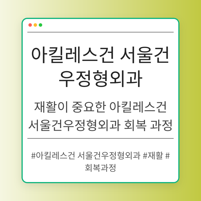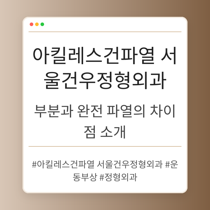 아킬레스건파열 서울건우정형외과은 운동 중 자주 발생하는 부상으로, 부분 파열과 완전 파열로 나뉩니다. 각 유형은 발생 원인, 증상, 치료 방법에서 차이를