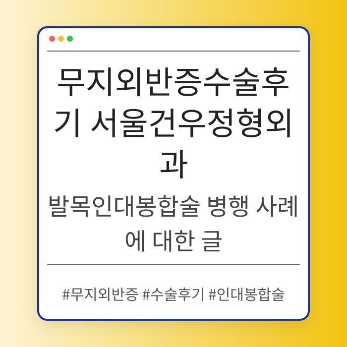 글에서는 무지외반증수술 후 발목인대봉합술이 병행된 사례를 통해 치료 과정 및 결과를 설명합니다. 이러한 수술 후기는 환자들에게 중요한 정보와 인사이트를 제공하여,