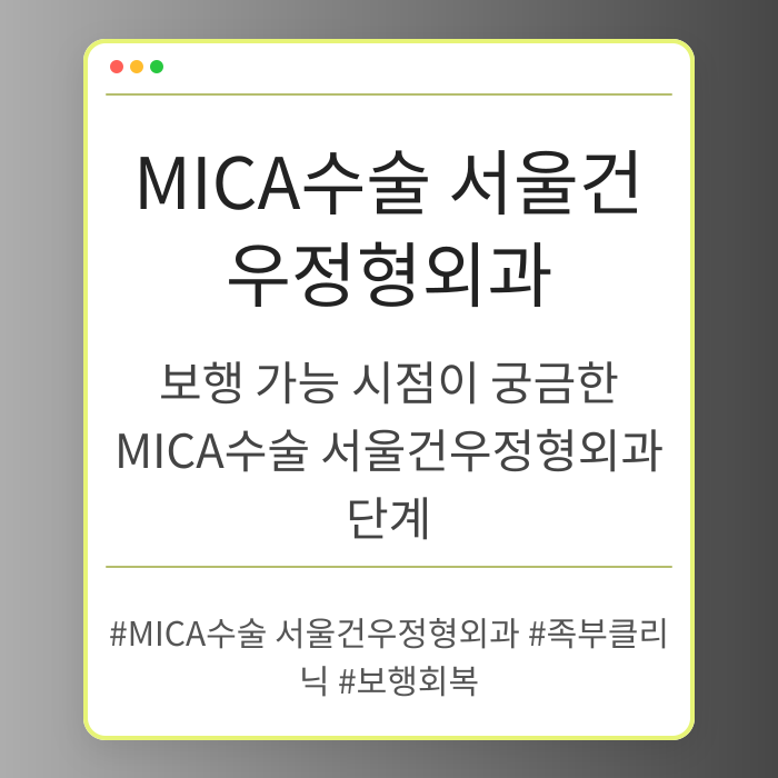 MICA수술 서울건우정형외과은 복잡한 족부 문제를 해결하기 위한 중요한 방법입니다. 이 수술의 진행 단계와 보행 가능 시점에 대한 이해는 회복 과정에서